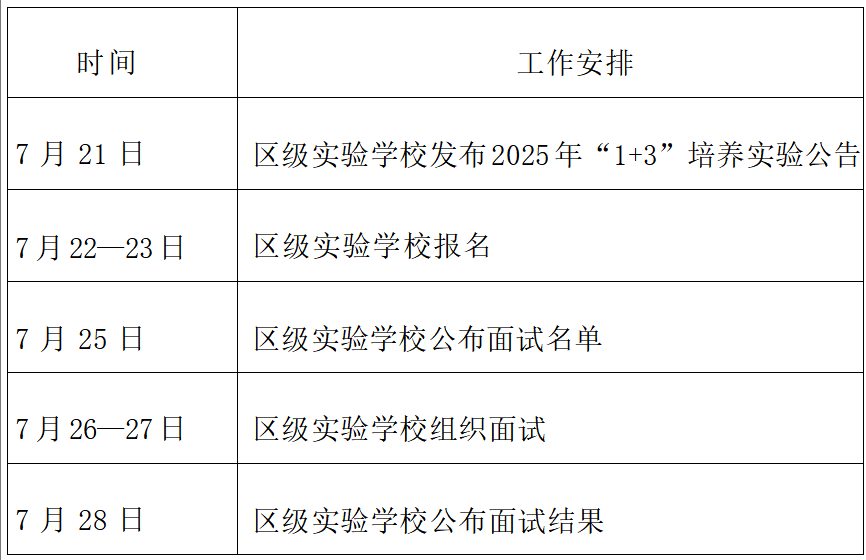 符合条件、志愿申报的学生,可在规定时间内登录北京市“1+3”培养实验平台(https://yjs.bjedu.cn),自愿在区级实验学校中选择一所报名。